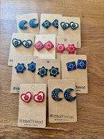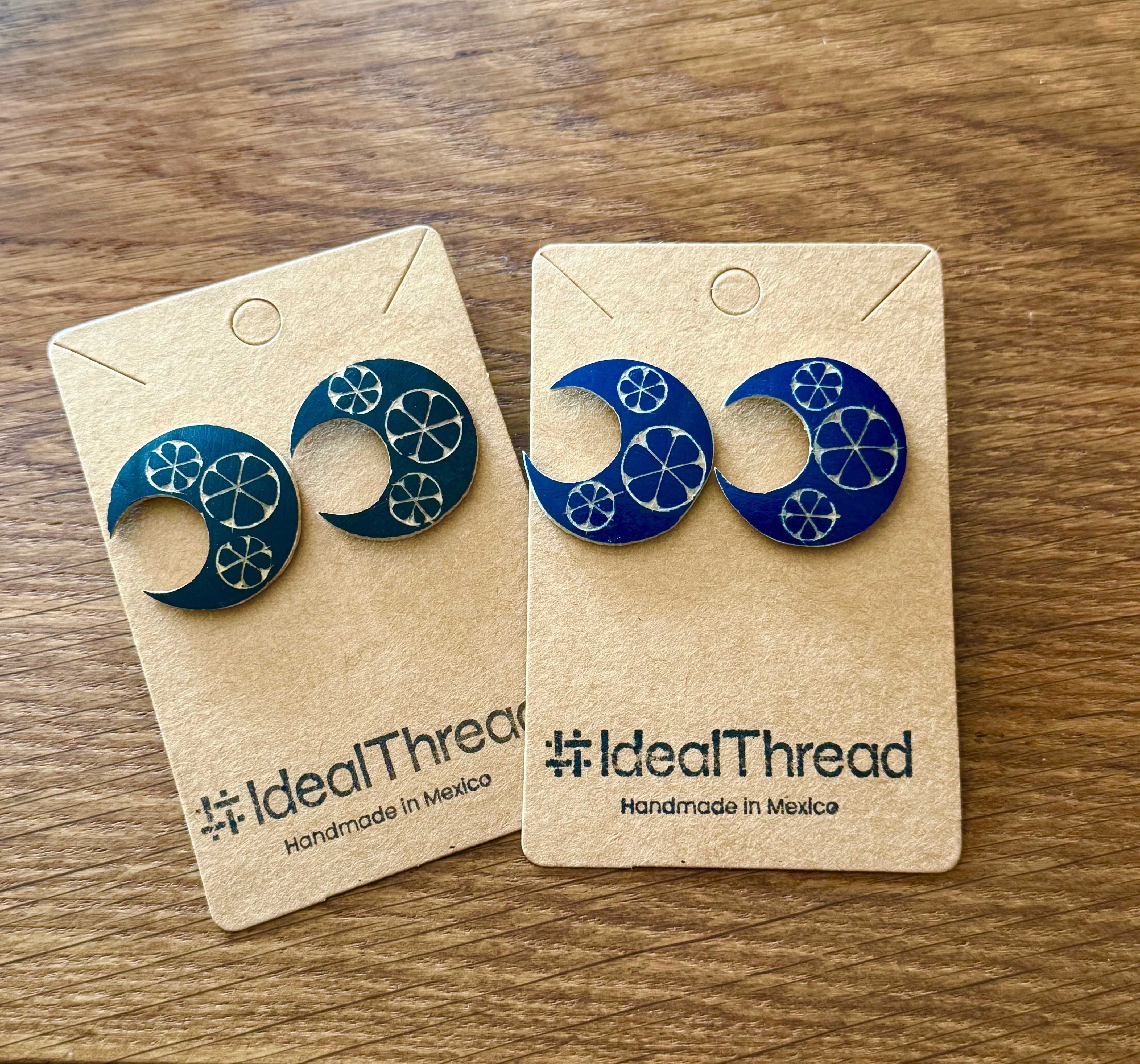 Handcrafted from the shell of the jícara fruit, these small post earrings are light as air and full of soul. Each pair is lovingly shaped into timeless symbols — flowers, moons, and hearts — celebrating nature, emotion, and tradition.